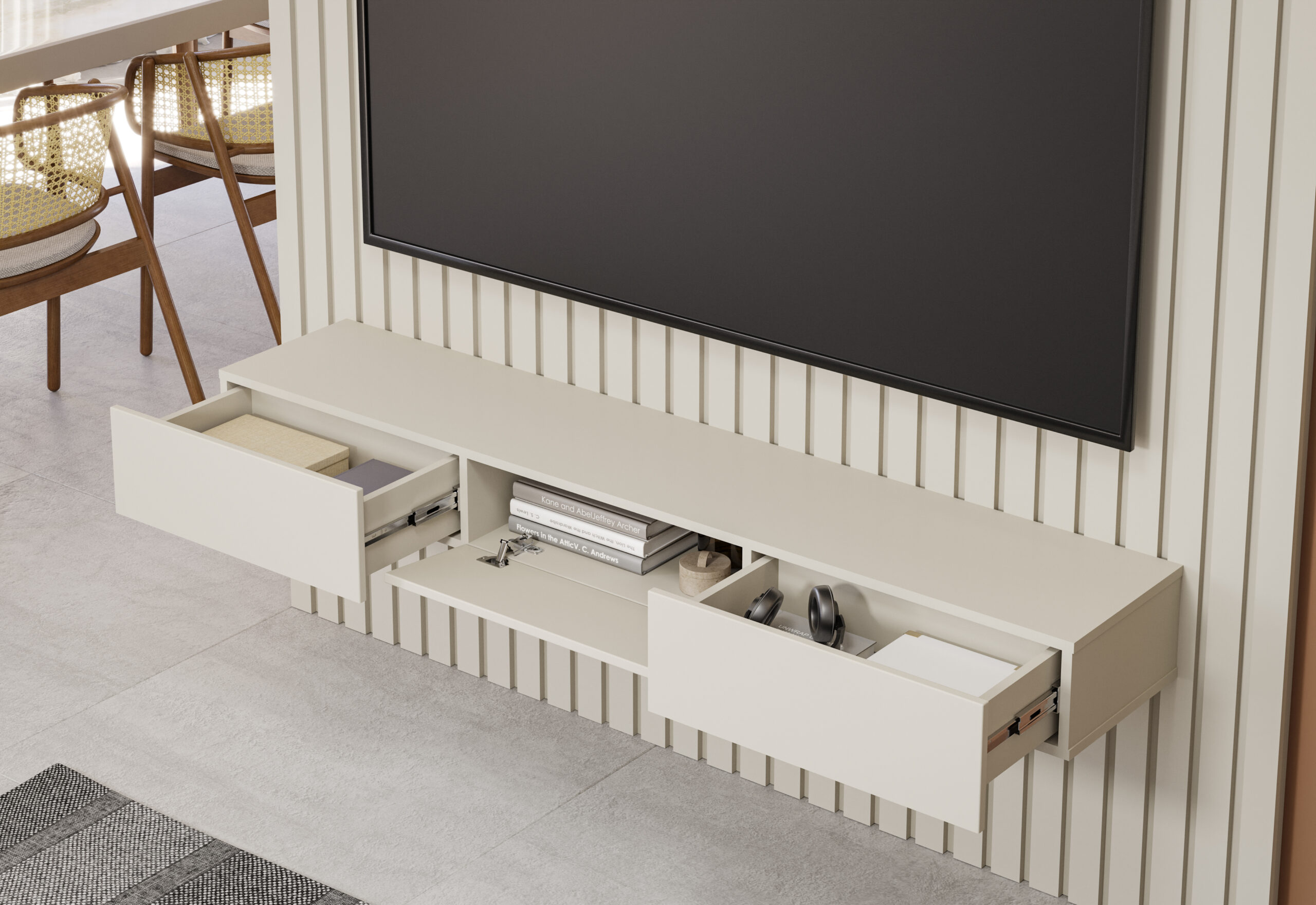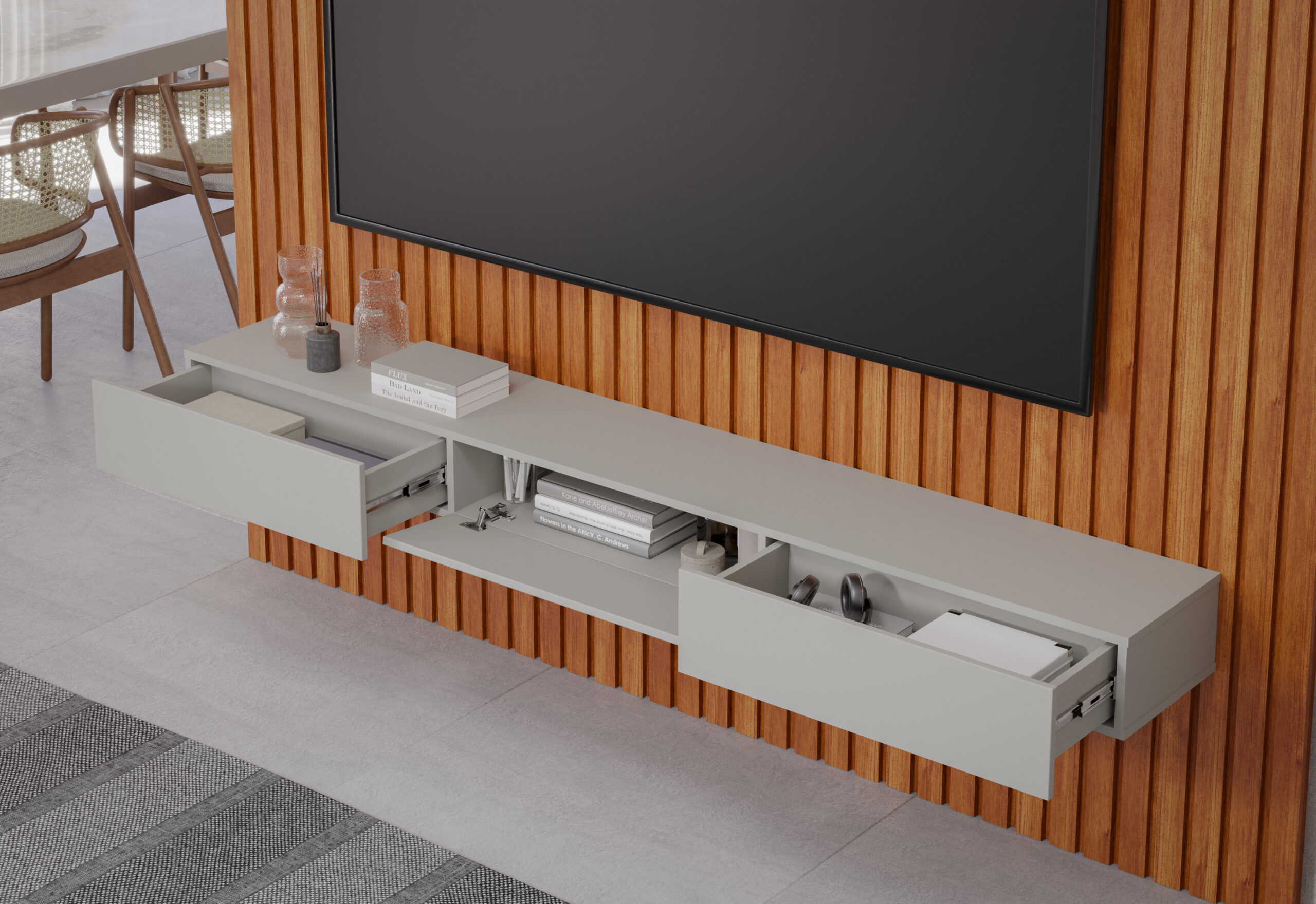 O Home Maragogi é um produto feito em  100% em MDF e suporta TVs de até 84″.
